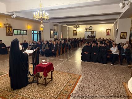 Στη συνέχεια ο Σεβ. Μητροπολίτης κ. Κύριλλος άνοιξε τον φετινό κύκλο των καθιερωμένων ομιλιών κατά τους Κατανυκτικούς Εσπερινούς της Μεγ. Τεσσαρακοστής, αναπτύσσοντας το θέμα <<Αγία και Μεγάλη Τεσσαρακοστή: Πορεία προς το Πάσχα>>.
