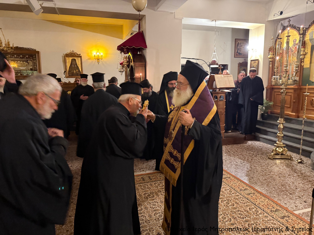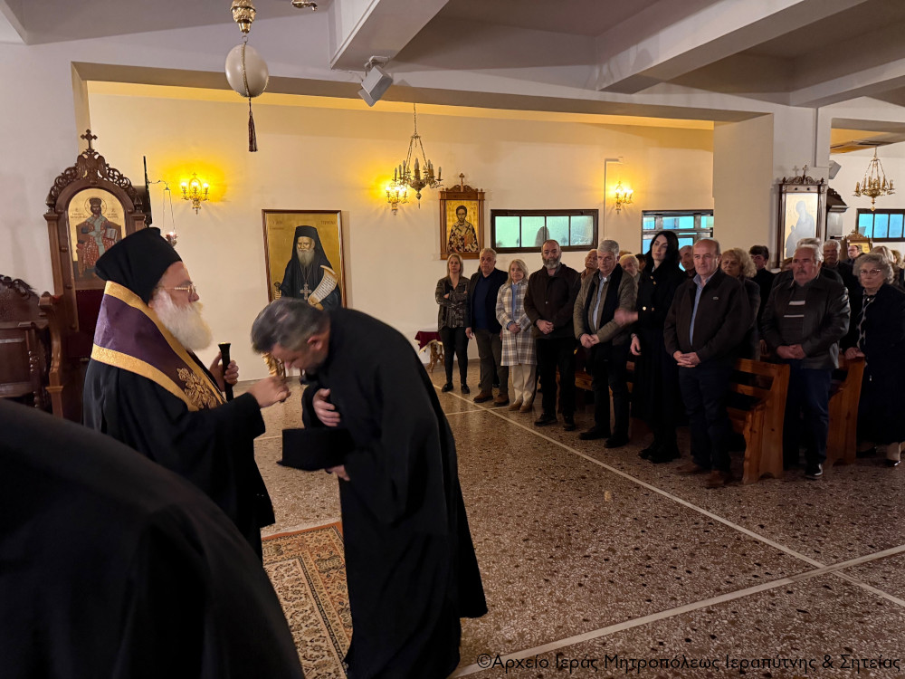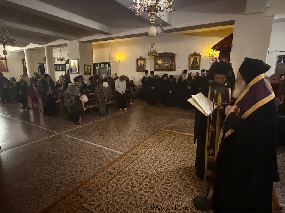 Το απόγευμα της Κυριακής της Τυρινής 22 Φεβρουαρίου 2026 ο Σεβασμιώτατος Μητροπολίτης Ιεραπύτνης και Σητείας κ. Κύριλλος χοροστάτησε στην ακολουθία του Α Κατανυκτικού Εσπερινού, του λεγόμενου και Εσπερινού της Συγγνώμης, στον κατάμεστο από πιστούς Ιερό Καθεδρικό Ναό Αγίας Φωτεινής Ιεράπετρας.