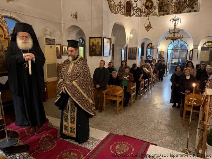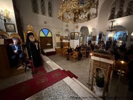 Εκκλησιάσθηκαν αρκετοί ενορίτες, που προσήλθαν στον Ιερό Ναό για να προσκυνήσουν με ευλάβεια τον Νυμφίο της Εκκλησίας και συμμετείχαν προσευχητικά στην ακολουθία, που τέλεσε ο Εφημέριος της Ενορίας Πανοσιολ. Αρχιμ. Φιλόθεος Δοργιάκης και μετείχε ο Διάκονος Θεμιστοκλής Μπεϊνάς, μεταξύ των οποίων ο πρ. Δήμαρχος κ. Νίκος Χριστοφακάκης και ο Δημοτικός Σύμβουλος κ. Παναγιώτης Σαρρής.