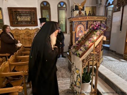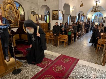 Μετά το πέρας της ακολουθίας ο Σεβασμιώτατος κ. Κύριλλος ανέλυσε συνοπτικά τα διδάγματα της παραβολής των Δέκα Παρθένων, που είπε ο Χριστός λίγο πριν από το εκούσιο Πάθος Του, και ευχήθηκε στο εκκλησίασμα καλή και ευλογημένη Αγία και Μεγάλη Εβδομάδα, για να αξιωθούμε όλοι να ζήσουμε την αληθινή Ανάσταση.
