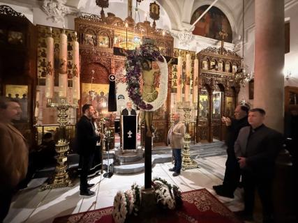 Την Ακολουθία τέλεσε ο Αιδεσιμολ. Εφημέριος και προϊστάμενος του ναού Πρωτ. Αθανάσιος Ταρλαντέζος και ο Ιερολ. Διάκονος Θεμιστοκλής Μπεϊνάς.