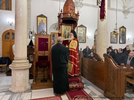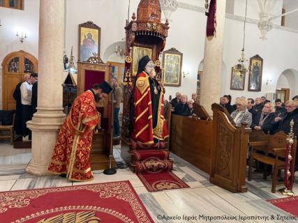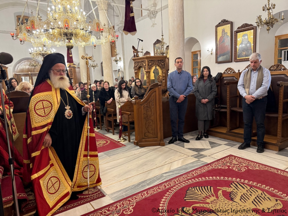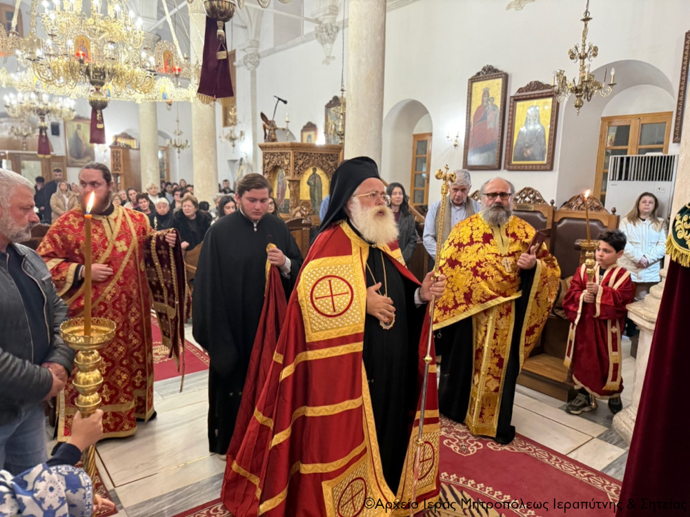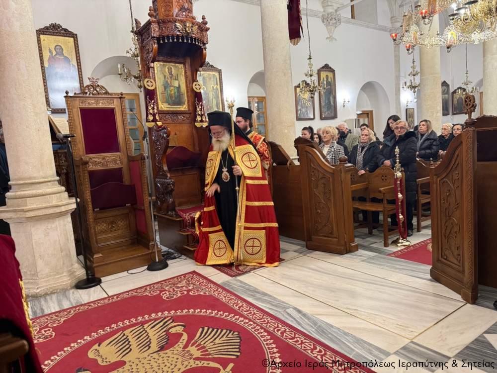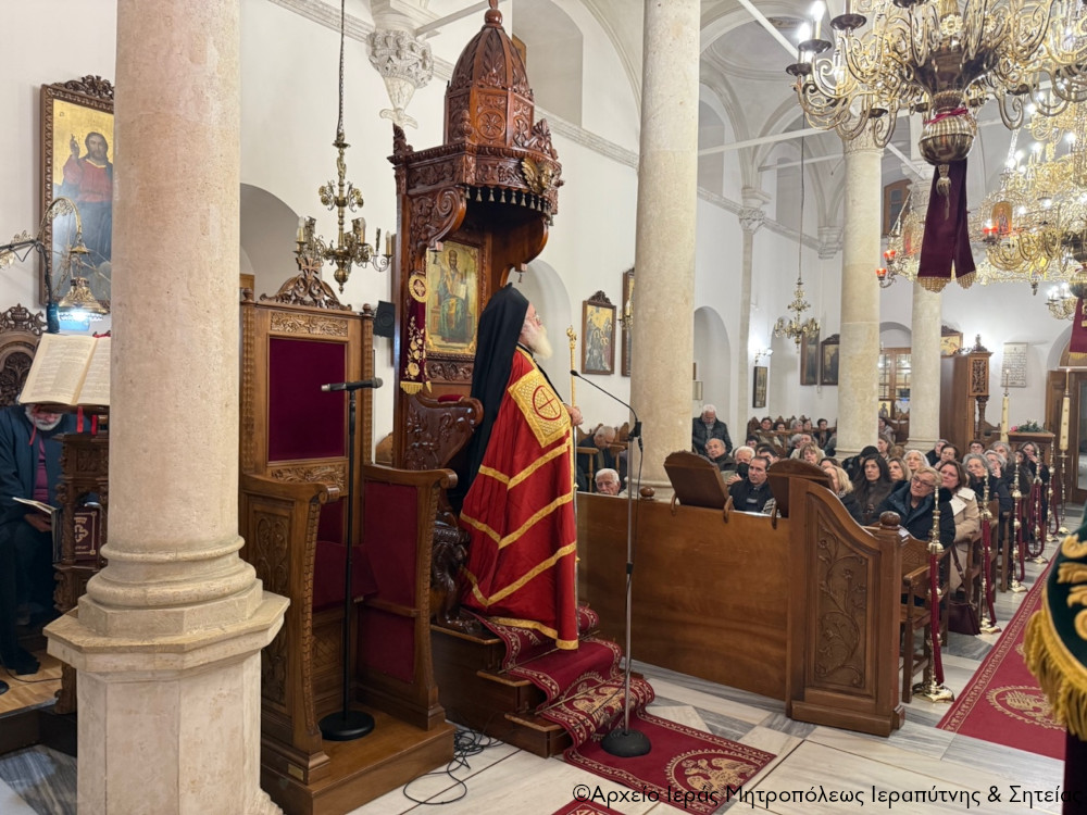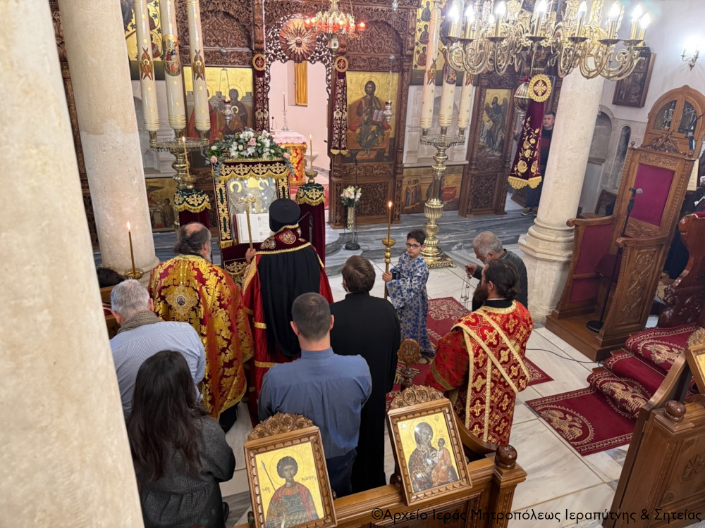Σε ατμόσφαιρα κατάνυξης το εσπέρας της Παρασκευής 27 Φεβρουαρίου 2026 τελέσθηκε στον Ιερό Μητροπολιτικό Ναό Αγίου Γεωργίου πόλεως Ιεράπετρας η Ακολουθία της Α΄ Στάσης των Χαιρετισμών της Υπεραγίας Θεοτόκου, χοροστατούντος του Σεβ. Μητροπολίτου Ιεραπύτνης και Σητείας κ. Κυρίλλου, ο οποίος και κήρυξε επίκαιρα τον θείο λόγο.