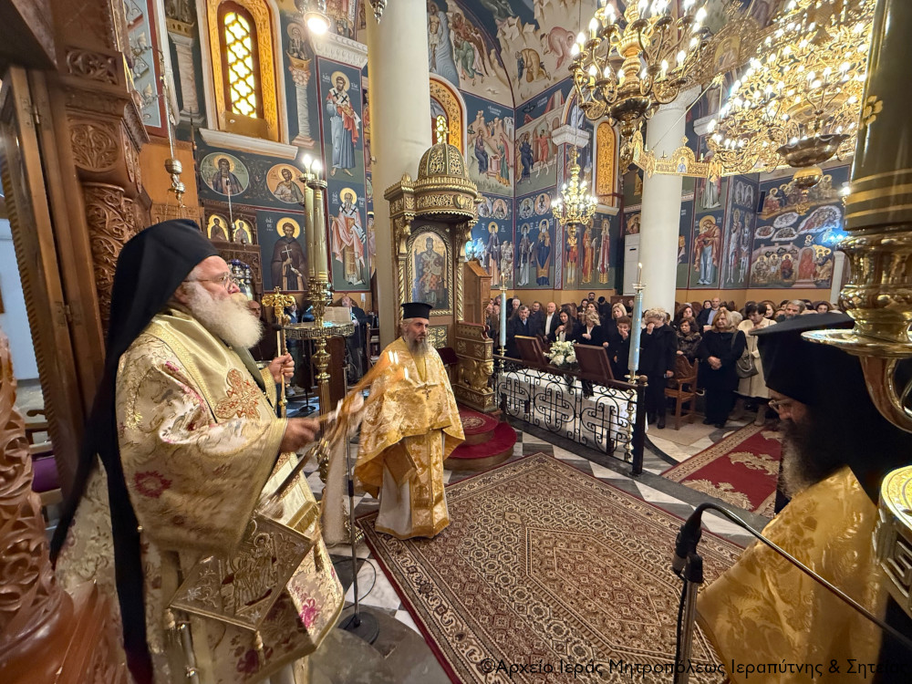Την Β΄ Κυριακή των Νηστειών (Αγίου Γρηγορίου του Παλαμά), 8 Μαρτίου 2026, ο Σεβ. Μητροπολίτης Ιεραπύτνης και Σητείας κ. Κύριλλος χοροστάτησε στην ακολουθία του Όρθρου, στη συνέχεια τέλεσε τη Θεία Λειτουργία του Μεγάλου Βασιλείου, κήρυξε επίκαιρα τον θείο λόγο στον Ιερό Καθεδρικό Ναό Αγίας Αικατερίνης πόλεως Σητείας, και πριν από την Απόλυση τέλεσε το τεσσαρακονθήμερο μνημόσυνο υπέρ αναπαύσεως της ψυχής της μακαριστής Δέσποινας Μανουσάκη, συμβολαιογράφου και υποθηκοφύλακα Σητείας.
