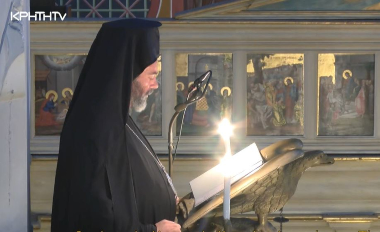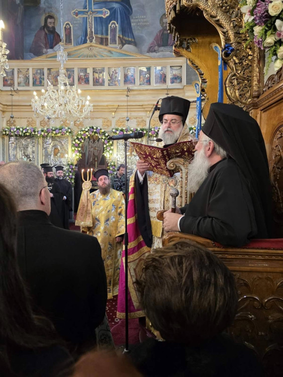 Εκ μέρους της Ιεράς Επαρχιακής Συνόδου καλωσόρισε στην βαϊφόρο εορτή της Τοπικής Εκκλησίας των Χανίων ο Σεβ. Αρχιεπίσκοπος Κρήτης κ. Ευγένιος.