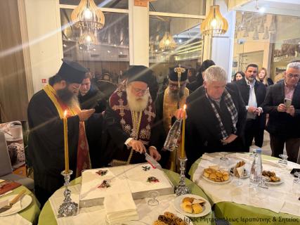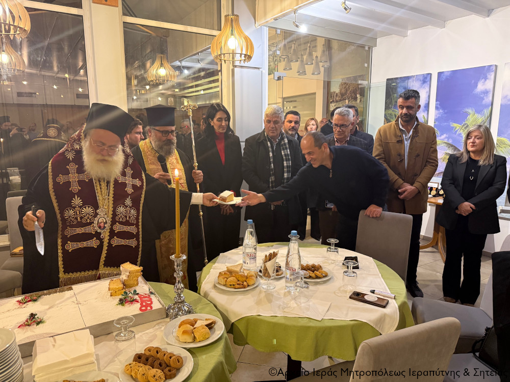 Στην τελετή κοπής της Βασιλόπιτας έλαβαν μέρος ο Πρωτοσύγκελλος της Μητροπόλεως Πανοσιολ. Αρχιμ. Αμβρόσιος Σκαρβέλης, ο Αιδεσιμολ. Πρωτ. Αθανάσιος Ταρλαντέζος, Εφημέριος του Ι. Μ. Ναού Αγίου Γεωργίου Ιεράπετρας, και ο Διάκονος Θεμιστοκλής Μπεϊνάς.