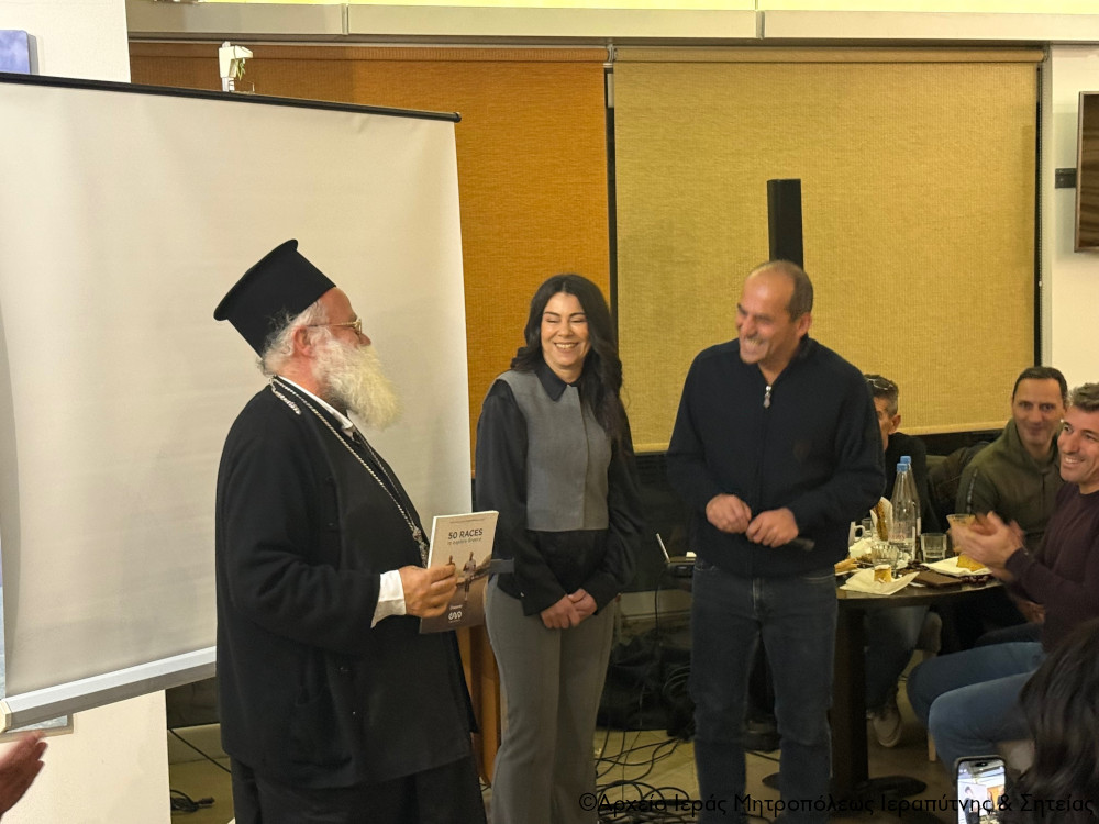Ο Σεβ. κ. Κύριλλος ευχήθηκε στον Πρόεδρο κ. Νικόλαο Τζωρτζάκη, στα Μέλη του Δ.Σ. και σε όλα τα μέλη του Συλλόγου, αλλά και σε όλους τους παρόντες στην εκδήλωση, καλή και ευλογημένη χρονιά με υγεία, ειρήνη, ευημερία και επιτυχία στις πλούσιες δράσεις του Συλλόγου. Επίσης, εξήρε τις αθλητικές διοργανώσεις και λοιπές δράσεις του σωματείου για την υποστήριξη αγώνων δρόμου και άλλων αθλητικών δραστηριοτήτων, με σκοπό τη μαζική συμμετοχή, τη διασφάλιση της υγείας και της ποιότητας ζωής των συμπολιτών μας.