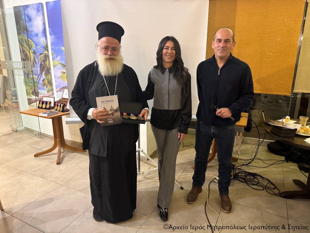 Ο Πρόεδρος του Συλλόγου κ. Νικ. Τζωρτζάκης ευχαρίστησε τον Σεβ. Μητροπολίτη κ. Κύριλλο, τους περευρισκομένους εκπροσώπους των Αρχών και των λοιπών φορέων για τη συνεργασία, και παρουσίασε συνοπτικά τις δράσεις και τους νέους στόχους του συλλόγου. Μάλιστα στο τέλος της εκδήλωσης επέδωσε, όπως και σε άλλους Φορείς, στον Σεβ. κ. Κύριλλο ως ένδειξη τιμής και ευγνωμοσύνης μία κασετίνα με τα τρία μετάλλια που μέχρι σήμερα έχει κυκλοφορήσει ο Σύλλογος και απονέμει στους νικητές των αγώνων, εμπνευσμένα από τα νομίσματα της αρχαίας Ιεράπυτνας.