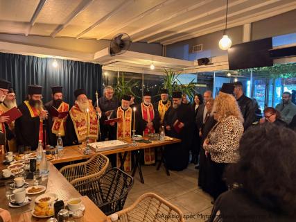 Στην τελετή κοπής της Βασιλόπιτας έλαβαν μέρος ο Πρωτοσύγκελλος της Μητροπόλεως Πανοσιολ. Αρχιμ. Αμβρόσιος Σκαρβέλης και όλοι οι Ιερείς της πόλεως Ιεράπετρας.