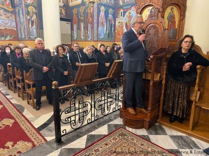 Μετά την Απόλυση ο Σεβ. ευχήθηκε στο εκκλησίασμα καλή και ευλογημένη Μεγάλη Τεσσαρακοστή, και ο Κύριος της ζωής και του θανάτου, ο και νεκρών και ζώντων Αθάνατος Βασιλεύς, να αναπαύει τις μακαρίες ψυχές των αειμνήστων Ελένης και Νικολάου μετά των αγίων και των Δικαίων μέσα στο φως του προσώπου Του.
