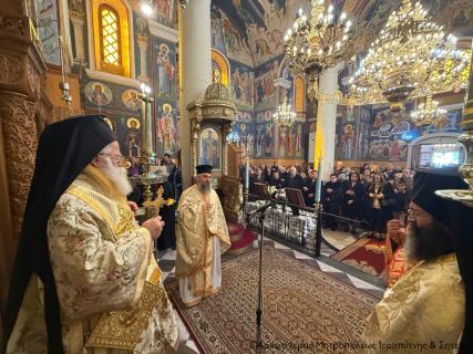 Την Κυριακή της Τυρινής, 22 Φεβρουαρίου 2026, ο Σεβασμιώτατος Μητροπολίτης Ιεραπύτνης και Σητείας κ. Κύριλλος χοροστάτησε κατά την ακολουθία του Όρθρου και στη συνέχεια ιερούργησε στον Ιερό Καθεδρικό Ναό Αγίας Αικατερίνης Σητείας, όπου και τέλεσε τα ιερά μνημόσυνα των μακαριστών Ελένης Παθιάκη (τεσσαρακονθήμερο), μητέρας του Εφημερίου της Ενορίας π. Νικολάου Παθιάκη, και Νικολάου Αναγνωστάκη (ετήσιο).