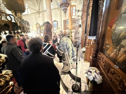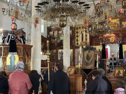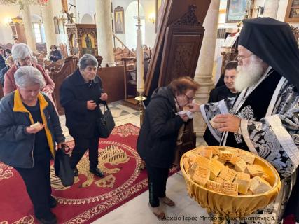 Στην Προηγιασμένη Θεία Λειτουργία ακολουθία έλαβαν μέρος ο Αιδεσιμολ. Εφημέριος και προϊστάμενος του ναού πρωτ. Αθανάσιος Ταρλαντέζος και ο Ιερολ. Διάκονος Θεμιστοκλής Μπεϊνάς, ενώ εκκλησιαστηκαν ενορίτες και άλλοι ευσεβείς χριστιανοί της πόλης.
