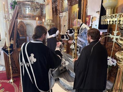 Μετά το πέρας της τελευταίας φετινής Θείας Λειτουργίας των Προηγιασμένων Τιμίων Δώρων ο Σεβασμιώτατος ευχήθηκε στο εκκλησίασμα χρόνια πολλά και ευλογημένη την υπόλοιπη Αγία και Μεγάλη Εβδομάδα.