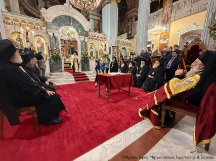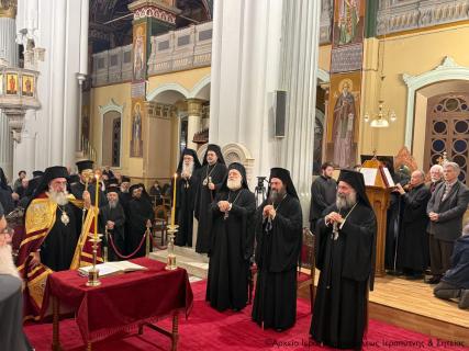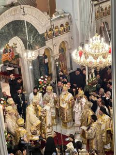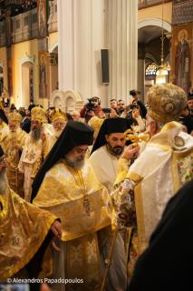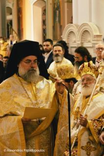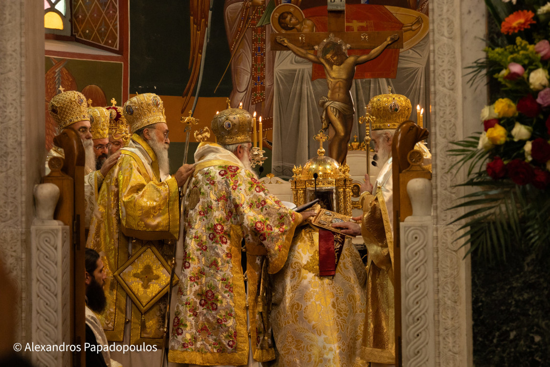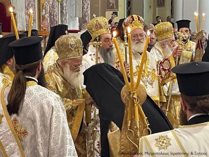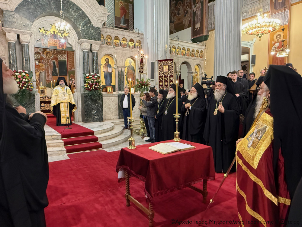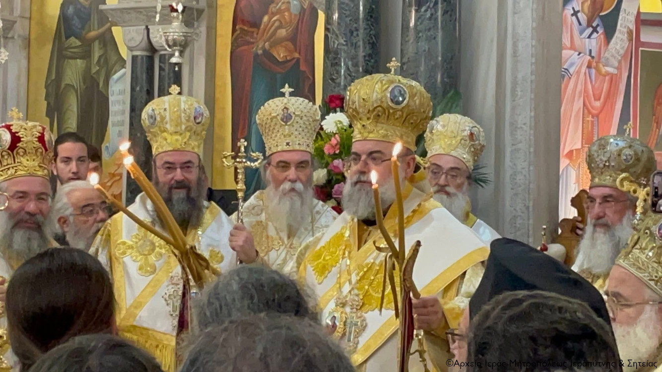 Στον Όρθρο χοροστάτησε ο Σεβασμιώτατος Μητροπολίτης Πέτρας και Χερρονήσου κ. Γεράσιμος, ενώ στη Θεία Λιετουργία προεξήρχε ο Σεβασμιώτατος Αρχιεπίσκοπος Κρήτης κ. Ευγενιος, με τον οποίο συλλειτούργησαν οι Σεβασμιώτατοι Μητροπολίτες Σάμου, Ικαρίας και Κορσεών κ. Ευσέβιος, Γορτύνης και Αρκαδίας κ. Μακάριος, Αρκαλοχωρίου, Καστελλίου και Βιάννου κ. Ανδρέας, Πτολεμαΐδος κ. Μακάριος εκ του Πατριαρχείου Ιεροσολύμων, Πέτρας και Χερρονήσου κ. Γεράσιμος, Ιεραπύτνης και Σητείας κ. Κύριλλος, Ρεθύμνης και Αυλοποτάμου κ. Πρόδρομος, Σελευκείας κ. Θεόδοωρος και ο Θεοφιλέστατος Επίσκοπος Κνωσού κ. Μεθόδιος.