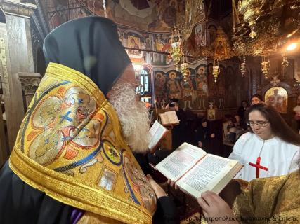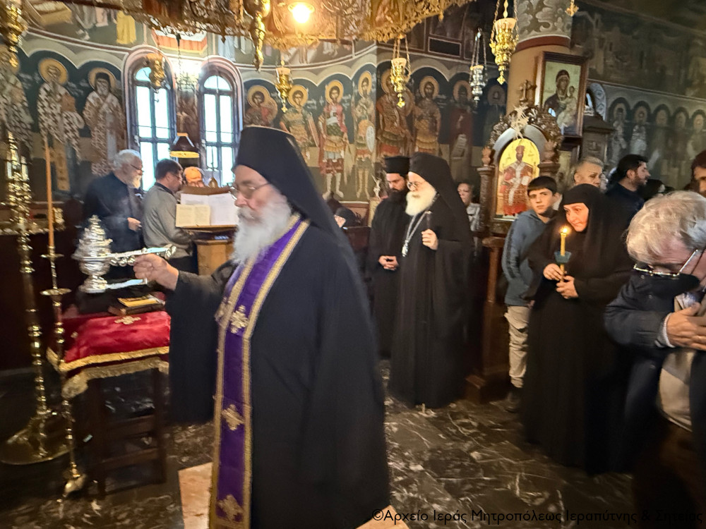 Προηγήθηκε η Ακολουθία του Μεγάλου Αποδείπνου, κατά την οποία χοροστάτησε ο Σεβ. Μητροπολίτης Ιεραπύτνης και Σητείας κ. Κύριλλος.