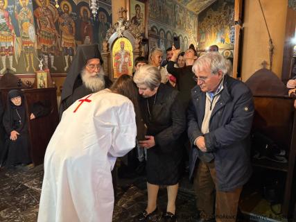 Μετά το πέρας της Ακολουθίας οι πολυάριθμοι προσκυνητές ευχήθηκαν στη νέα μοναχή Θέκλα καλό παράδεισο και ακολούθησε κέρασμα για όλους τους παρευρισκόμενους στο Αρχονταρίκι και στον αύλειο χώρο του μοναστηριού.