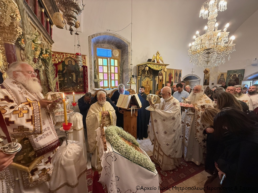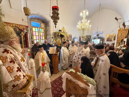 Ο Σεβ. Μητροπολίτης Ιεραπύτνης και Σητείας κ. Κύριλλος χοροστάτησε στην ακολουθία του Όρθρου και στη συνέχεια ιερούργησε, περιστοιχούμενος από Εφημερίους της ευρύτερης περιοχής, κήρυξε επίκαιρα τον θείο λόγο, και τέλεσε μνημόσυνο υπέρ αναπαύσεως της ψυχής του μακαριστού Μοναχού Θεοφάνους, κατά σάρκα αδερφού της Ηγουμένης Ολυμπιάδας Μοναχής και αδελφού της Μονής Βαρλαάμ Μετεώρων.