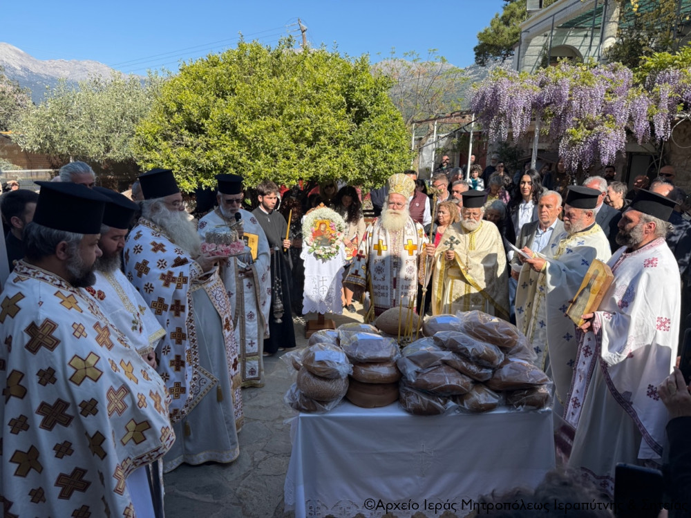 Με Αρχιερατική Θεία Λειτουργία και μέσα στην αναστάσιμη και ευφρόσυνη ατμόσφαιρα της Πασχάλιας περιόδου εορτάσθηκε την Τετάρτη 22 Απριλίου 2026 στην Ιερά Μονή Παναγίας Εξακουστής Μαλλών Ιεράπετρας η ετήσια μνήμη του Οσίου Θεοφόρου Πατρός ημών Χατζη-Ανανίου, κτήτορος και ανακαινιστού της Μονής.