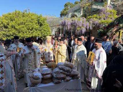 Ακολούθησε πλούσιο κέρασμα στο Αρχονταρίκι και στον αύλειο χώρο της Μονής για όλο το εκκλησίασμα.