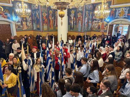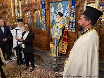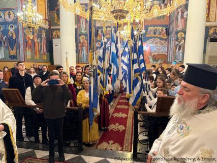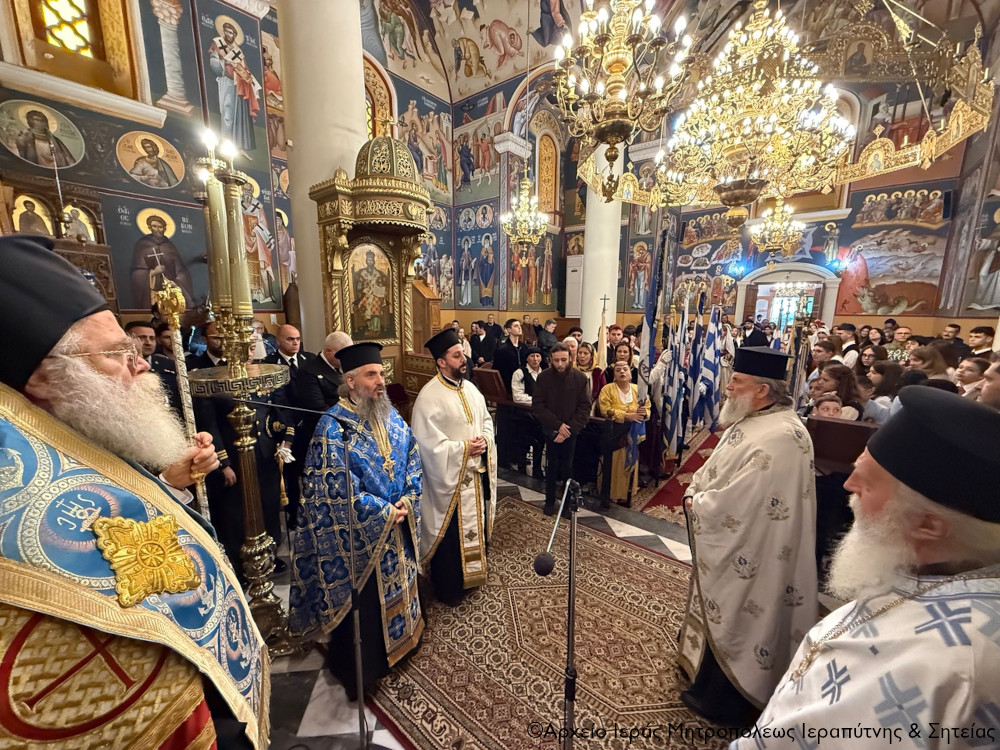 Η καθιερωμένη επίσημη Δοξολογία της εθνικής επετείου τελέσθηκε στον Ιερό Καθεδρικό Ναό Αγίας Αικατερίνης Σητείας, χοροστατούντος του Σεβασμιωτάτου Μητροπολίτου Ιεραπύτνης και Σητείας κ. Κυρίλλου, με τη συμμετοχή του Ιερού Κλήρου της πόλεως και την παρουσία των εκπροσώπων της Δημοτικής Αρχής, της Περιφέρειας Κρήτης, των Ενόπλων Δυνάμεων και των Σωμάτων Ασφαλείας, των Διευθυντών, των σημαιοφόρων και των παραστατών των σχολείων, καθώς και των συλλόγων και σωματείων της πόλης.