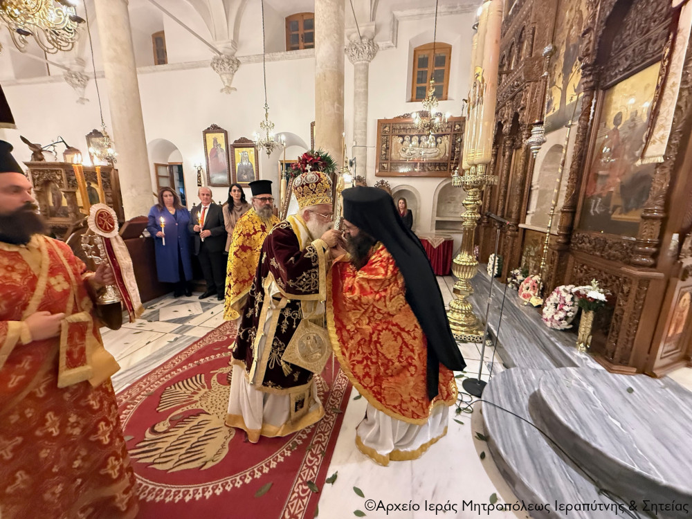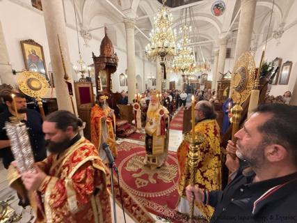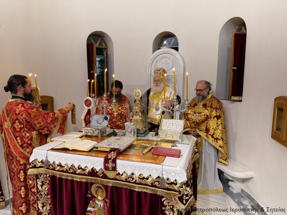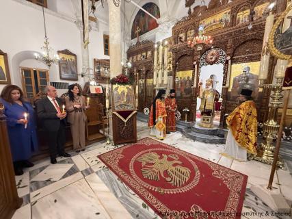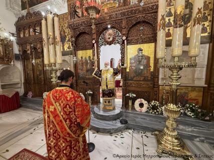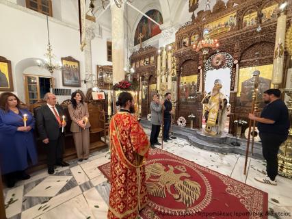Στην Αρχιερατική Θεία Λειτουργία έλαβαν μέρος ο Πρωτοσύγκελλος της Ι. Μητροπόλεως Πανοσιολ. Αρχιμ. Αμβρόσιος Σκαρβέλης, ο Εφημέριος και προϊστάμενος του ναού Αιδεσιμολ. Πρωτ. Αθανάσιος Ταρλαντέζος, και ο Ιερολ. Διάκονος Θεμιστοκλής Μπεϊνάς.
