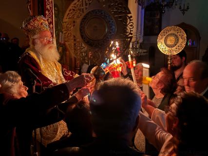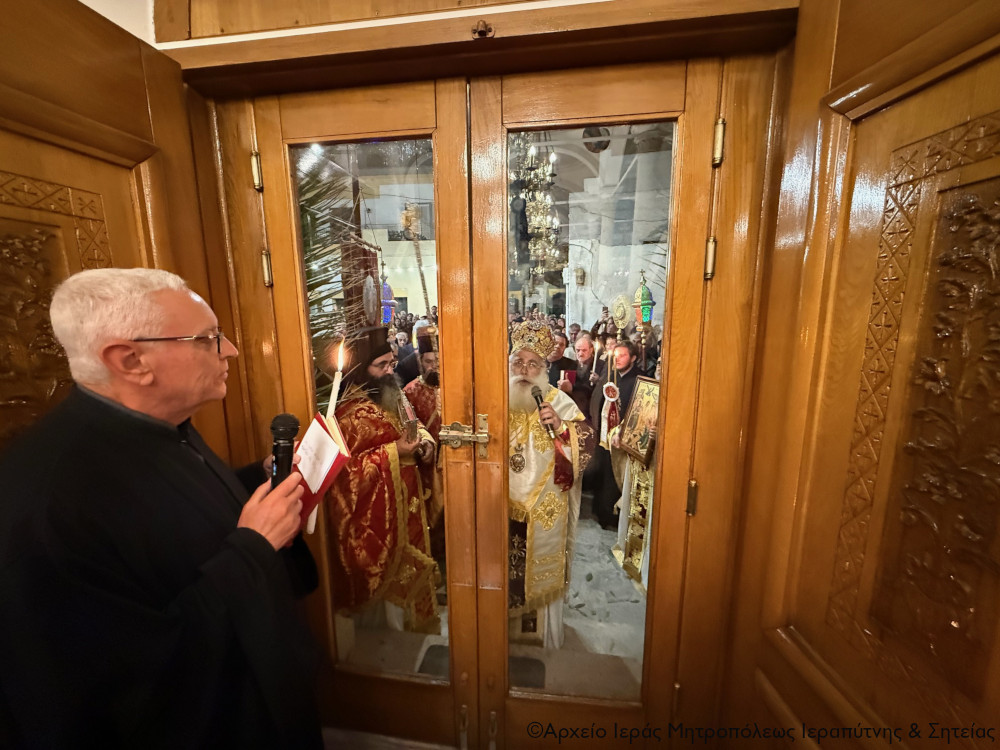 Και φέτος ο Σεβ. Μητροπολίτης Ιεραπύτνης και Σητείας κ. Κύριλλος χοροστάτησε στην ακολουθία της Παννυχίδος στον Ιερό Μητροπολιτικό Ναό Αγίου Γεωργίου Ιεράπετρας, κατά την οποία εκφώνησε το «Δεύτε λάβετε φως…» και μετέδωσε το Άγιο Φως στους πιστούς, το οποίο λίγο νωρίτερα μεταφέρθηκε στην Ιερά Μητρόπολη Ιεραπύτνης και Σητείας από το αεροδρόμιο του Ηρακλείου από τον Πρωτοσύγκελλο Πανοσιολ. Αρχιμ. Αμβρόσιο Σκαρβέλη, όπου πραγματοποιήθηκε η επίσημη τελετή υποδοχής, προεξάρχοντος του Σεβ. Αρχιεπισκόπου Κρήτης κ. Ευγενίου.