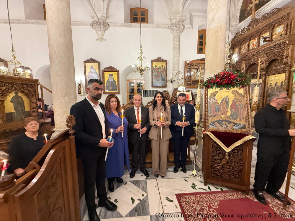 Εκκλησιάσθηκαν ο Δήμαρχος Ιεράπετρας κ. Εμμανουήλ Φραγκούλης, η Βουλευτής Λασιθίου κ. Κατερίνα Σπυριδάκη, η Εντεταλμένη Περιφερειακή Σύμβουλος στον τομέα Πολιτισμού της Π.Ε. Λασιθίου κ. Ελένη Βλάσση, οι Αντιδήμαρχοι Εμμανουήλ Τζώρτζης και Γεώργιος Γιακουμάκης, και πλήθος πιστών, η πλειονότητα των οποίων παρέμειναν έως το τέλος και κοινώνησαν των Αχράντων Μυστηρίων.