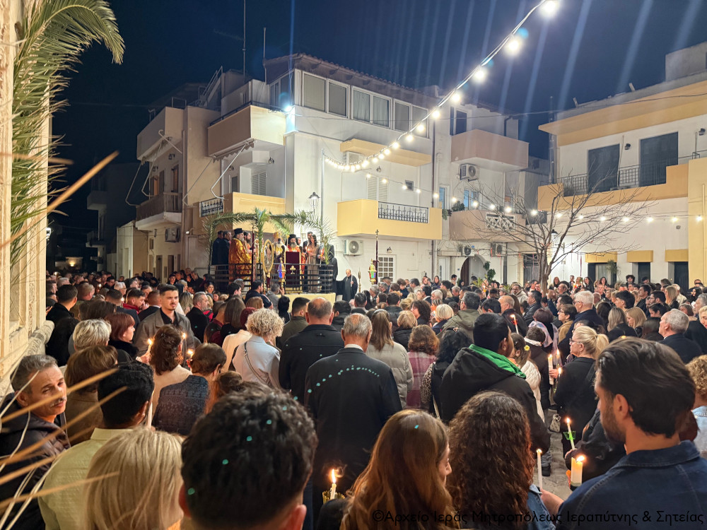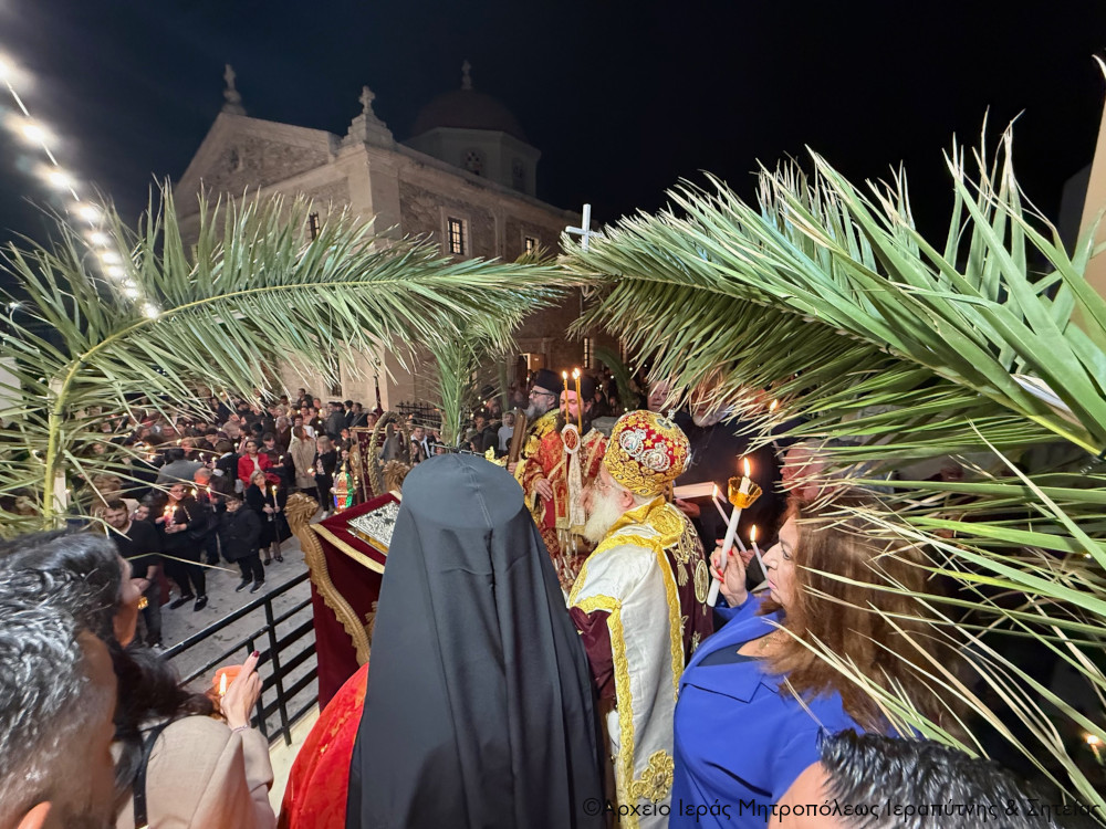 Με λαμπρότητα η τελετή της Αναστάσεως και η Θεία Λειτουργία της Κυριακής του Πάσχα στον Ιερό Μητροπολιτικό Ναό Αγίου Γεωργίου Ιεράπετρας
