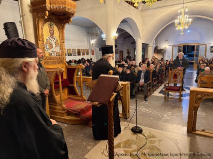 Ακόμα ο Σεβ. μίλησε για την προσμονή της εορτής του Πάσχα ως εορτής της χαράς, της ελπίδας, της ειρήνης και της καταλλαγής στον ταραγμένο κόσμο μας και υπογράμμισε τη σημασία της εκδήλωσης στο πλαίσιο της προετοιμασίας μας για την κατάλληλη υποδοχή του Νυμφίου της Εκκλησίας, ο οποίος εντός ολίγου έρχεται για να πορευθεί προς το εκούσιο πάθος και τον δια Σταυρού θάνατό Του, για τη σωτηρία όλων των ανθρώπων.