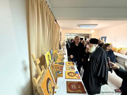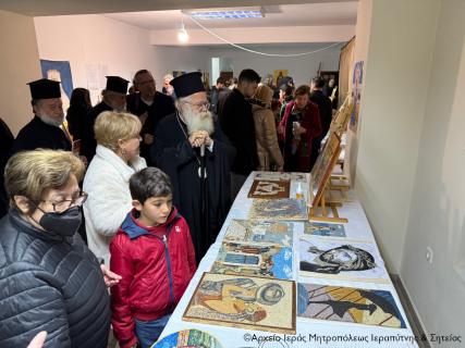 Ο Σεβασμιώτατος Μητροπολίτης Ιεραπύτνης και Σητείας κ. Κύριλλος συνεχάρη τα μέλη της Χορωδίας και τον Χοράρχη και επικεφαλής των διδασκόντων της Σχολής στη πόλη της Σητείας π. Νικόλαο Αλεξάκη και εξήρε το έργο που επιτελείται στις αίθουσες του ναού, προκειμένου οι εκκλησιαστικές τέχνες της Βυζαντινής Μουσικής, της Αγιογραφίας και του Ψηφιδωτού να μεταλαμπαδεύονται στους νεώτερους. Επίσης συνεχάρη τους μαθητές της Σχολής Αγιογραφίας για τα εκτεθέντα έργα τους και ιδιαίτερα τον δάσκαλο της Αγιογραφίας και Θεολόγο κ. Νικόλαο Λελεκάκη και την υπεύθυνη του τμήματος Ψηφιδωτού κ. Ισμήνη Γαλανοπούλου.
