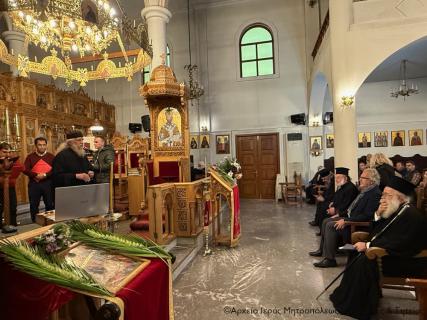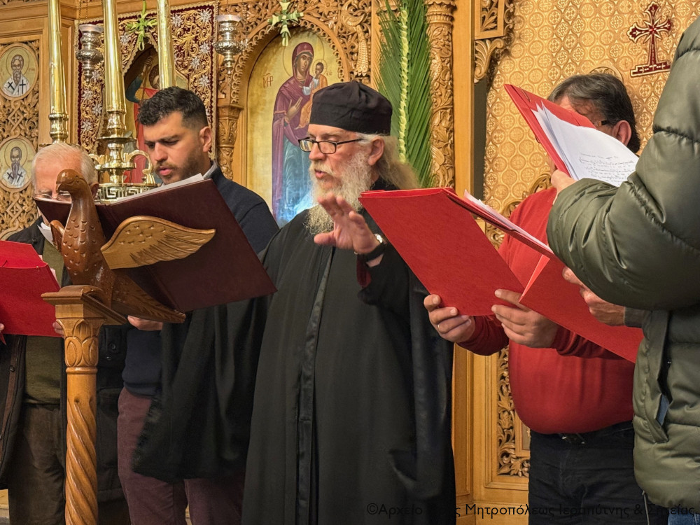Τέλος ευχήθηκε από καρδιάς όλοι μας να συμπορευθούμε νοερώς και με τη συμμετοχή μας στις ιερές ακολουθίες κατά την Εβδομάδα των Παθών με τον πορευόμενο προς το εκούσιο Πάθος Χριστὸ, για να βιώσουμε και εμείς την πνευματική ευφροσύνη, την ψυχική αγαλλίαση και την ανεκτίμητη χαρά της λαμπροφόρου Αναστάσεώς Του.