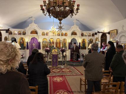 Την ακολουθία τέλεσε ο Αιδεσιμ. Σκευοφύλακας π. Εμμανουήλ Αυγουστινάκης, συνταξιούχος Εφημέριος και εφημερεύων του Ιερού Προσκυνήματος, συμπαραστατούμενος από τον Διάκονο Θεμιστοκλή Μπεϊνά, ενώ παρέστη συμπροσευχόμενος ο Πανοσιολ. Αρχιμ. Αμβρόσιος Σκαρβέλης, Πρωτοσύγκελλος της Ι. Μητροπόλεως.