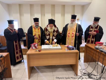 Στην τελετή της κοπής της Βασιλόπιτας, που ολοκληρώθηκε με κέρασμα, έλαβαν μέρος ο Αιδεσιμολ. Πρωτ. Ιωάννης Νεστοράκης, Εφημέριος της Ενορίας Μαύρου Κολύμπου και Αρχιερατικός Επίτροπος της Στ´ Αρχιερατικής Περιφέρειας, ο Αιδεσιμ. Πρωτ. Σάββας Λιναρδάκης, Εφημέριος της Ενορίας Παναγίας Ελεούσας Ιεράπετρας και Αρχιερατικός Επίτροπος της Β´ Αρχιερατικής Περιφέρειας, ο Αιδεσιμολ. Πρωτ. Αθανάσιος Ταρλαντέζος, Εφημέριος της Ενορίας Ι. Μ. Ναού Αγ. Γεωργίου Ιεράπετρας και Αρχιερατικός Επίτροπος της Α´ Αρχιερατικής Περιφέρειας, ο Αιδεσιμ. Οικονόμος π. Μηνάς Κρητικός, Εφημέριος της Ενορίας Κουτσουρά, και ο Διάκονος Θεμιστοκλής Μπεϊνάς.
