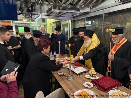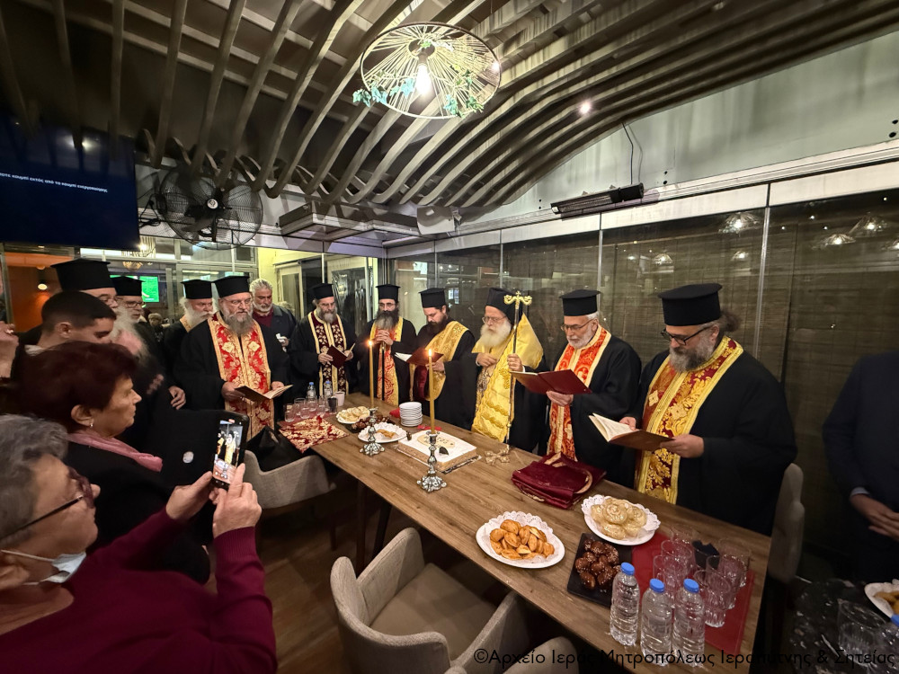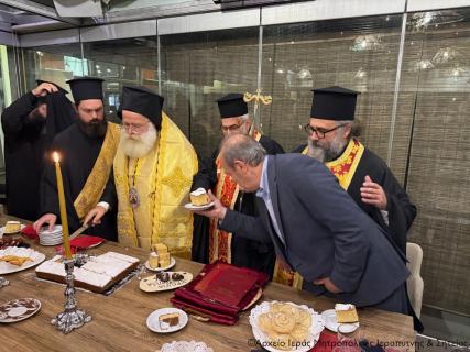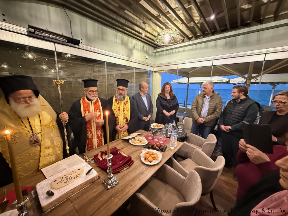 Το απόγευμα της Κυριακής 8 Φεβρουαρίου 2026 ο Σεβ. Μητροπολίτης Ιεραπύτνης και Σητείας κ. Κύριλλος, ανταποκρινόμενος σε ευγενή πρόσκληση της Προέδρου και των Μελών του Δ.Σ. του Συλλόγου Μικρασιατών Ιεράπετρας και περιστοιχούμενος από τον Πρωτοσύγκελλο της Μητροπόλεως Πανοσιολ. Αρχιμ. Αμβρόσιο Σκαρβέλη και τους Εφημερίους της πόλεως, μετέβη σε κεντρικό καφέ της παραλίας της πόλεως, όπου σε εγκάρδια ατμόσφαιρα ευλόγησε τη Βασιλόπιτα του Συλλόγου Μικρασιατών Ιεράπετρας.