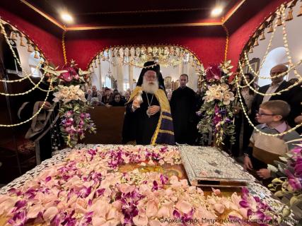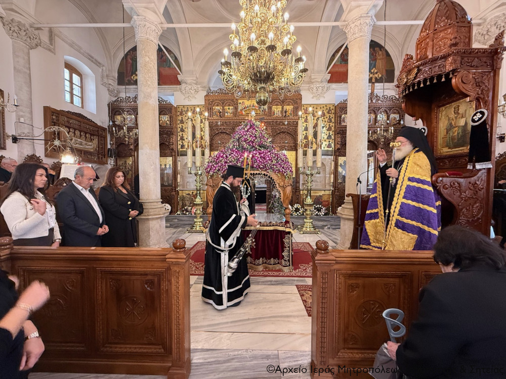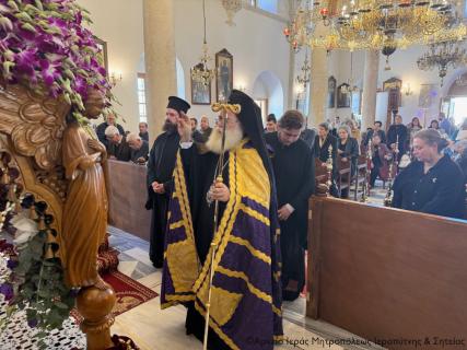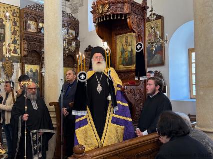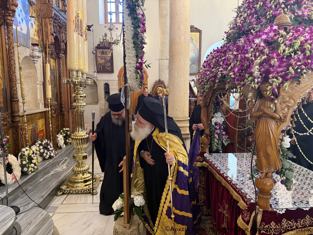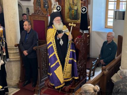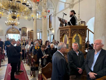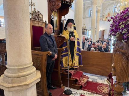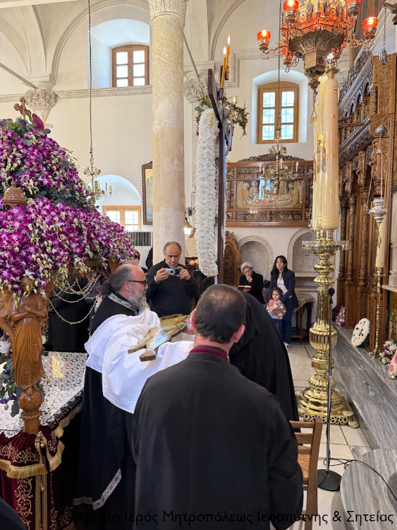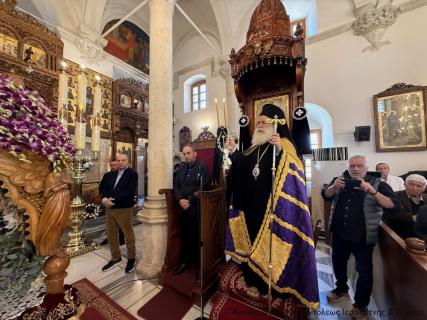 Πριν την Απόλυση ο Σεβασμιώτατος μίλησε επίκαιρα για τη Σταύρωση του Κυρίου μας Ιησού Χριστού ως έκφρασης του άπειρου ελέους και της θυσιαστικής αγάπης του Θεού για τον άνθρωπο, αναφέρθηκε στη ζοφερή εικόνα της εποχής μας και τόνισε την ανάγκη να επικρατήσει η αγάπη, η συγχώρηση και η ειρήνη για να φωτιστεί το σκοτάδι γύρω μας από το φως του Σταυρωθέντος για τις αμαρτίες μας, Ταφέντος και εντός ολίγου Αναστάντος Χριστού.