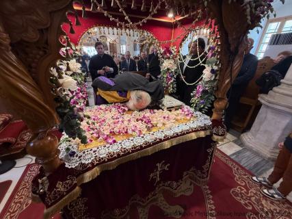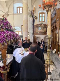 Στην Ακολουθία των Ωρών και του Αρχιερατικού Εσπερινού της Αποκαθηλώσεως έλαβαν μέρος ο Αιδεσιμολ. Εφημέριος και προϊστάμενος του ναού Πρωτ. Αθανάσιος Ταρλαντέζος και ο Ιερολ. Διάκονος Θεμιστοκλής Μπεϊνάς, ενώ παρέστη συμπροσευχόμενος εκ του Ιερού Βήματος ο Πανοσιολ. Αρχιμ. του Οικουμενικού Θρόνου π. Χρυσόστομος Παπαδάκης.