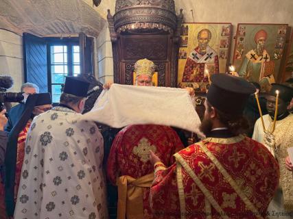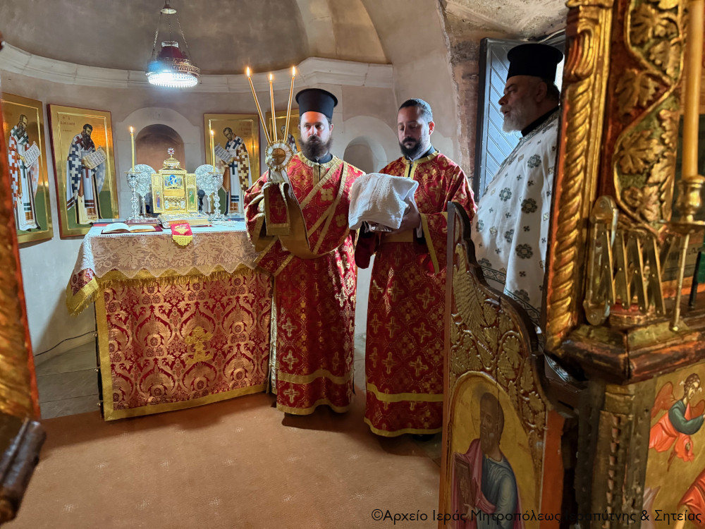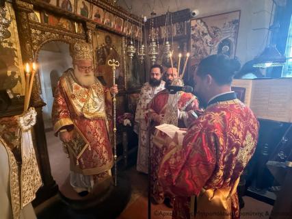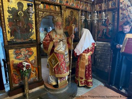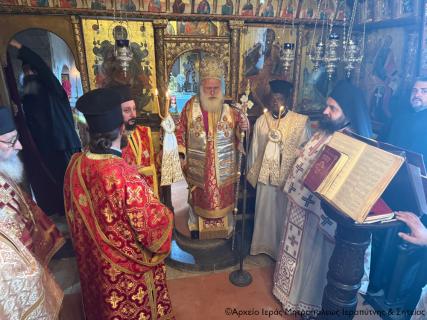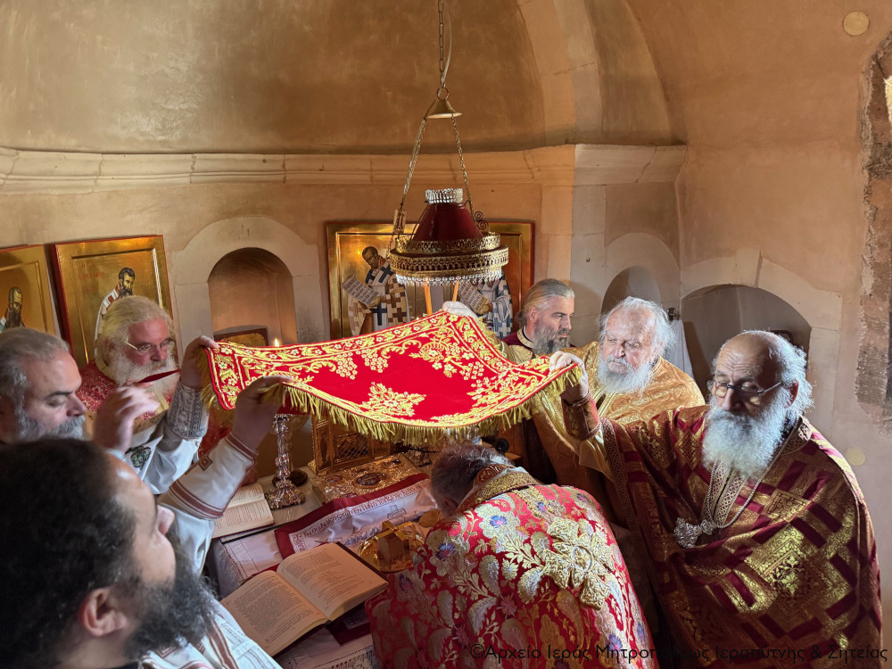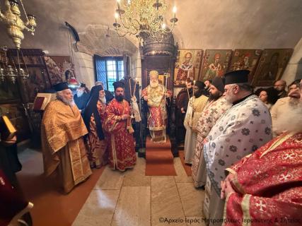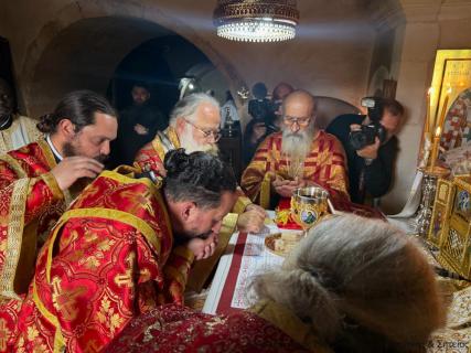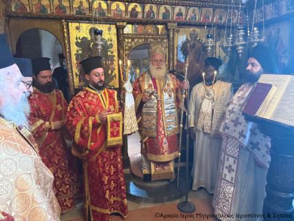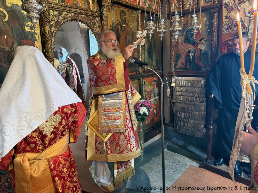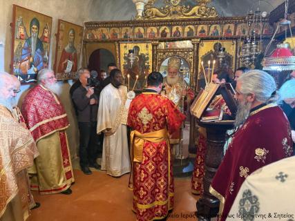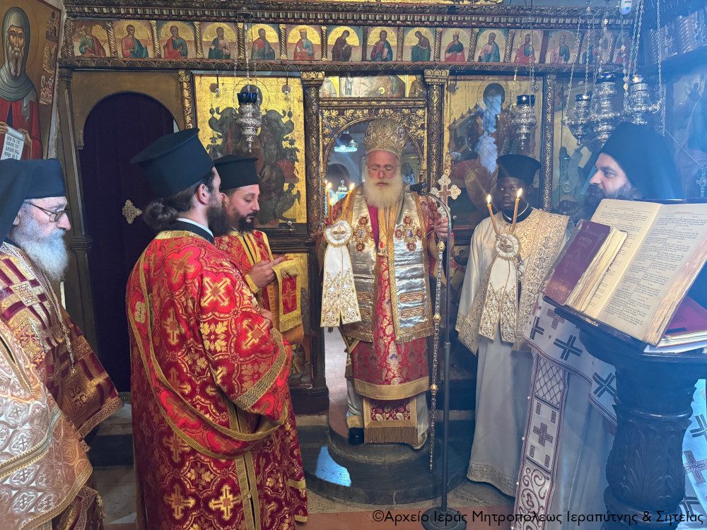 Στην Αρχιερατική Θεία Λειτουργία έλαβαν μέρος ο ο Παν/τος Αρχιμ. Φιλόθεος Σπανουδάκης, Προηγούμενος της Μονής, ο Πανοσιολ. Αρχιμ. π. Πορφύριος Μπικουβαράκης, Διευθυντής της Σχολής Μαθητείας Υποψηφίων Κληρικών (Σ.Μ.Υ.Κ.) Κρήτης, ο Αιδεσιμ. Πρωτ. Γεώργιος Τσικαλάκης, συνταξ. Εφημέριος και εφημερεύων της Ενορίας Έξω Μουλιανών, ο Αιδεσιμολ. Πρωτ. Ιωάννης Μαστοράκης, Υποδιευθυντής της Σχολής Μαθητείας Υποψηφίων Κληρικών Κρήτης, ο Αιδεσιμ. Πρωτ. Νικόλαος Παθιάκης, Εφημέριος της Ενορίας του Ι. Καθεδρικού Ναού Αγίας Αικατερίνης Σητείας, ο Αιδεσιμ. Οικονόμος π. Νικόλαος Σαββιδάκης, Εφημέριος της Ενορίας Αχλαδίων, και οι Διάκονοι Θεμιστοκλής Μπεϊνάς και Στέφανος Ογιούπ, κληρικός του Πατριαρχείου Αλεξανδρείας και σπουδαστής της Σ.Μ.Υ.Κ. Κρήτης, ενώ ο Πανοσιολ. Ηγούμενος της Ι. Μονής Τοπλού και Πρωτοσύγκελος της Ι. Μητροπόλεως Αρχιμ. Αμβρόσιος Σκαρβέλης εκτελούσε χρέη τελετάρχη.