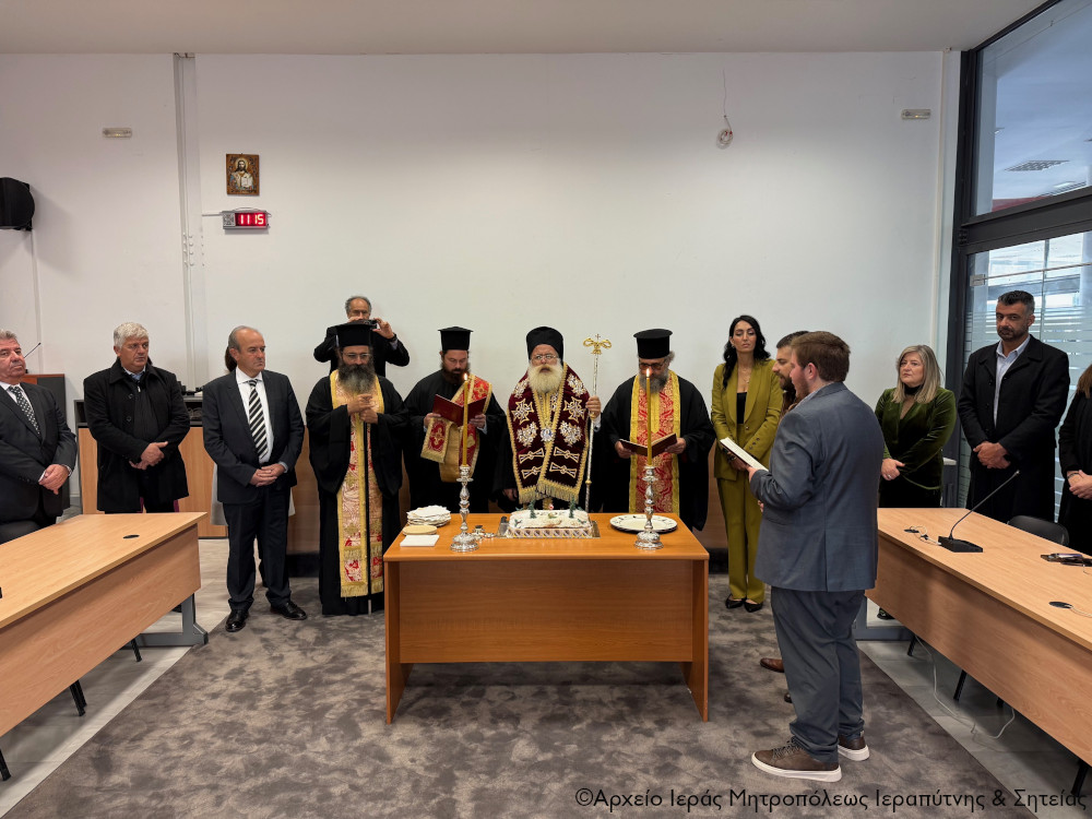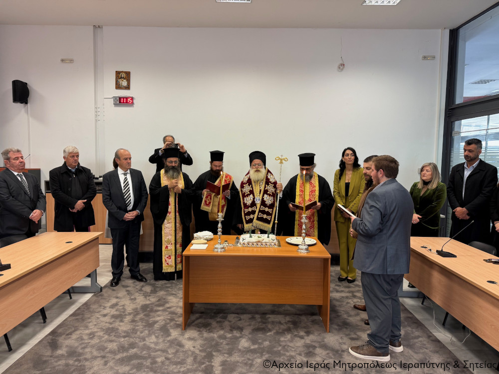 Σε εγκάρδια και εορταστική ατμόσφαιρα την Πέμπτη 1 Ιανουαρίου 2026, μετά την Αρχιερατική Θεία Λειτουργία και τη Δοξολογία στον Ι. Μητροπολιτικό Ναό Αγίου Γεωργίου, ο Σεβ. Μητροπολίτης Ιεραπύτνης και Σητείας κ. Κύριλλος ευλόγησε την Βασιλόπιτα του Δήμου Ιεράπετρας, στην αίθουσα συνεδριάσεων του Δημοτικού Συμβουλίου.