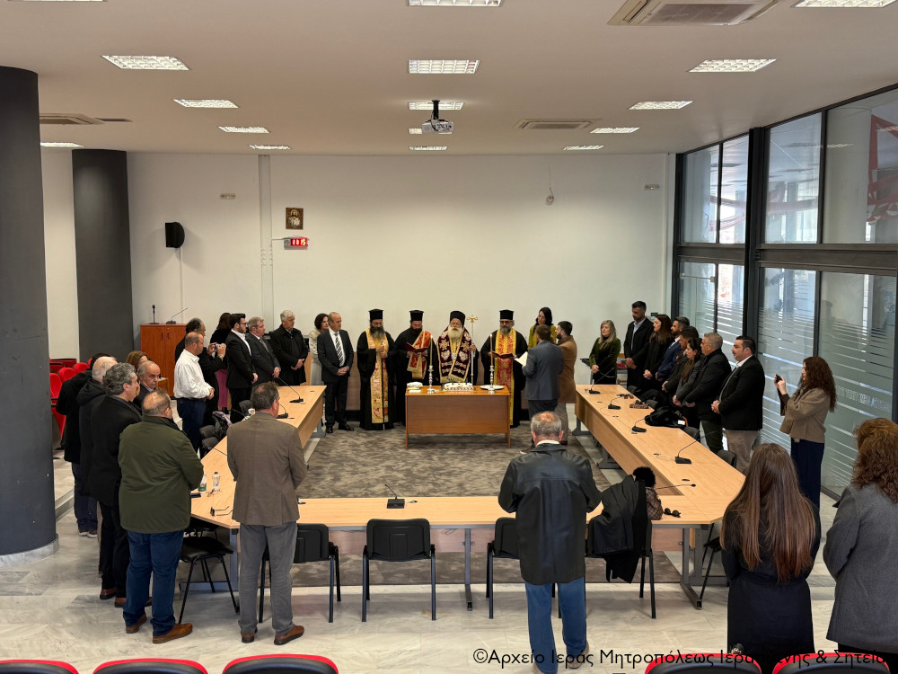 Ακολούθησαν οι ευχές του Σεβασμιωτάτου κ. Κυρίλλου, ο οποίος καρδιακά ευχήθηκε στον Δήμαρχο κ. Φραγκούλη, τους συνεργάτες του και όλα τα μέλη του Δημοτικού Συμβουλίου καλή και δημιουργική νέα χρονιά και η αίθουσα συνεδριάσεών τους να είναι χώρος γόνιμου και εποικοδομητικού διαλόγου, συνεργασίας και συνετών αποφάσεων για το καλό και την πρόοδο του τόπου μας.