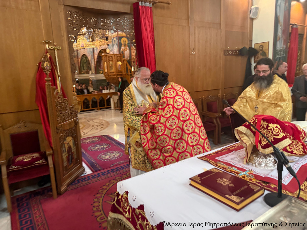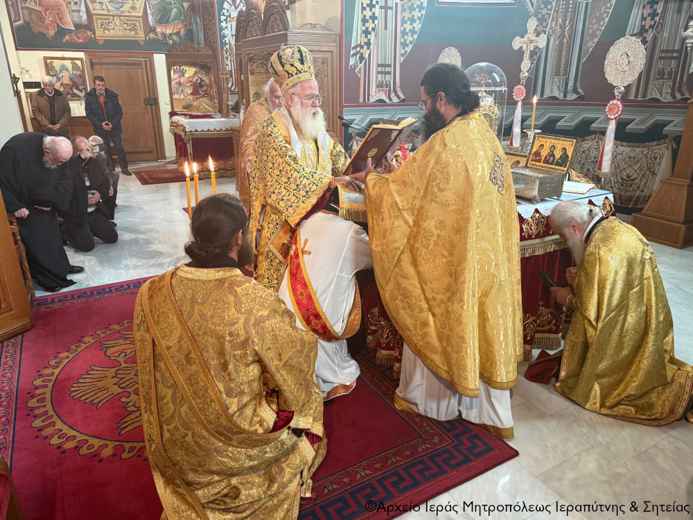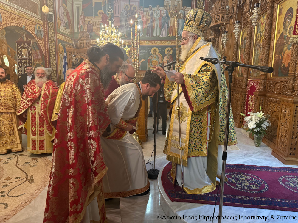 Κατά την Αρχιερατική Θεία Λειτουργία, μετά τη Μεγάλη Είσοδο κατά την τάξη, σε κλίμα συγκίνησης και κατάνυξης, o Σεβ. Μητροπολίτης κ. Κύριλλος προέβη στην εις πρεσβύτερον χειροτονία του ευλαβέστατου Διακόνου της Ιεράς Μητροπόλεως π. Μιχαήλ Λιανουδάκη, εγγάμου κληρικού από τον Πισκοκέφαλο της Σητείας.