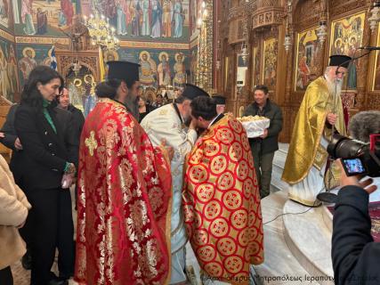 Μετά την Απόλυση της Αρχιερατικής Θείας Λειτουργίας, ο χειροτονηθείς Πρεσβύτερος διένειμε το αντίδωρο και δέχθηκε τις θερμές ευχές του εκκλησιάσματος για καλή ιερατική διακονία.